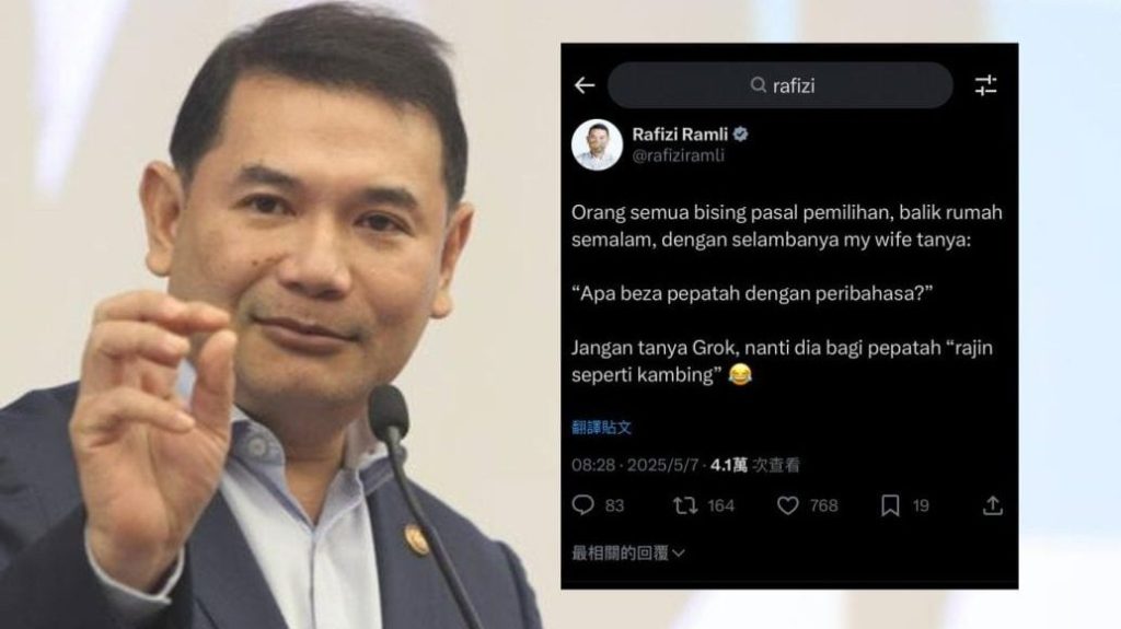 经济部长拿督斯里拉菲兹结束休假重返工作岗位,其社媒X的最新帖文,引起网民通过生成式人工智能询问公正党党选相关问题。