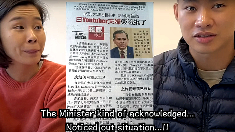 Japanese YouTuber couple iChang and Jimmy, popular with their videos featuring a variety of Malaysian food they enjoy, have been granted the DE Rantau Nomad Visa by Malaysia.