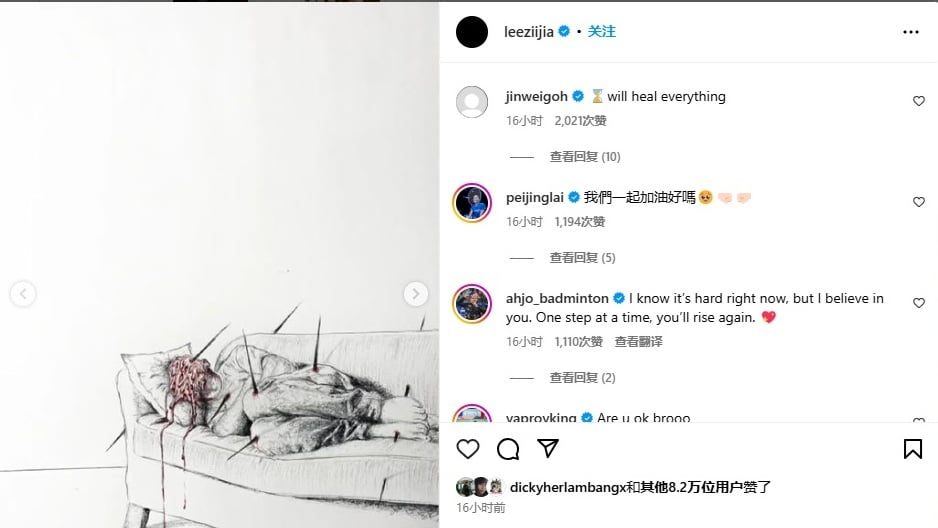 在去年巴黎奥运会夺得羽球男单铜牌的大马自由人李梓嘉,在昨日于其个人Instagram上传了10张黑白插画,该贴似乎传递着某种隐含讯息,但他并未附上任何文字说明,引发了一众大马运动员和球迷纷纷在其帖子下留言,为他加油打气。