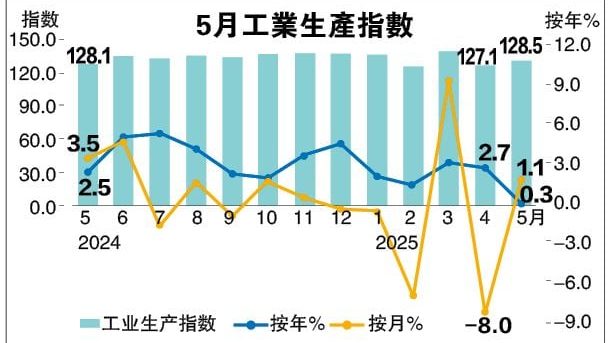 制造业放缓 油气产量急挫 5月IPI增0.3%远逊预期