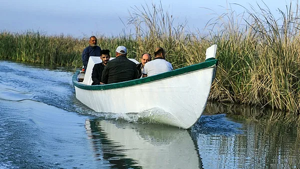 The small motorboat chugging through southern Iraq's marshes is similar to those tourists use to explore the vast swamplands, the reputed home of the biblical Garden of Eden.