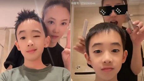 应采儿在自家替大儿子Jasper理发,还特地用发蜡做了造型,Jasper最后对镜头耍帅眨眼,撩妹举动让网民被电晕。