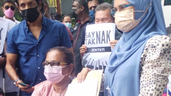 约100名来自不同组织的残障人士今早到国会大厦外进行抗议,并提呈一份针对无现金福利援助金计划(JKMPay)课题的备忘录,促请妇女、家庭及社会发展部长拿督斯里丽娜哈仑撤销JKMPay。