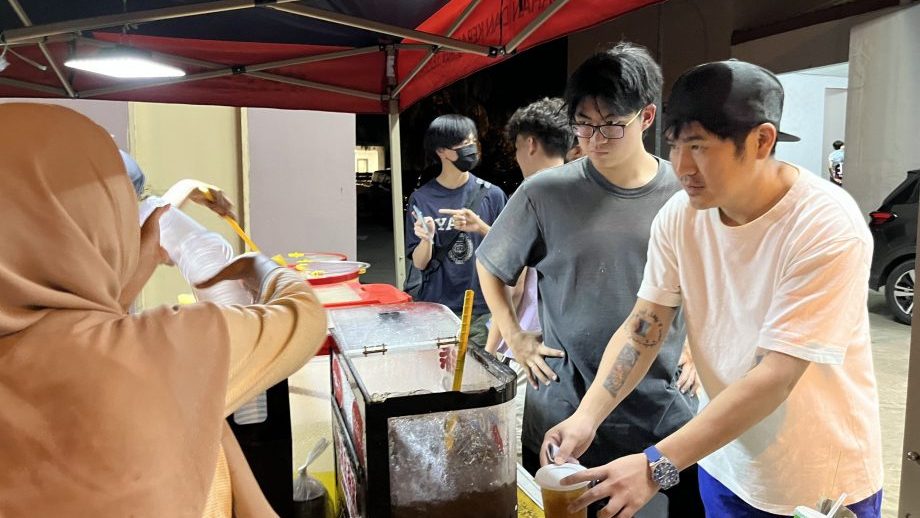 曹格今晚突然现身亚庇路阳民众会堂,亲身为参加篮球赛的儿子Joe曹三丰打气。