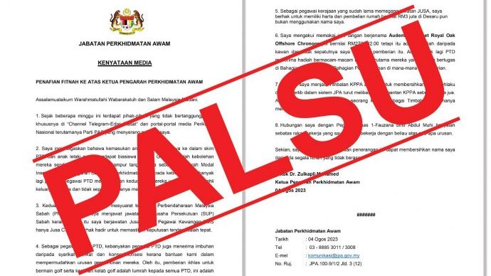 公共服务局(JPA) 指出,当局从未发布诬蔑公共服务局总监的否认声明。