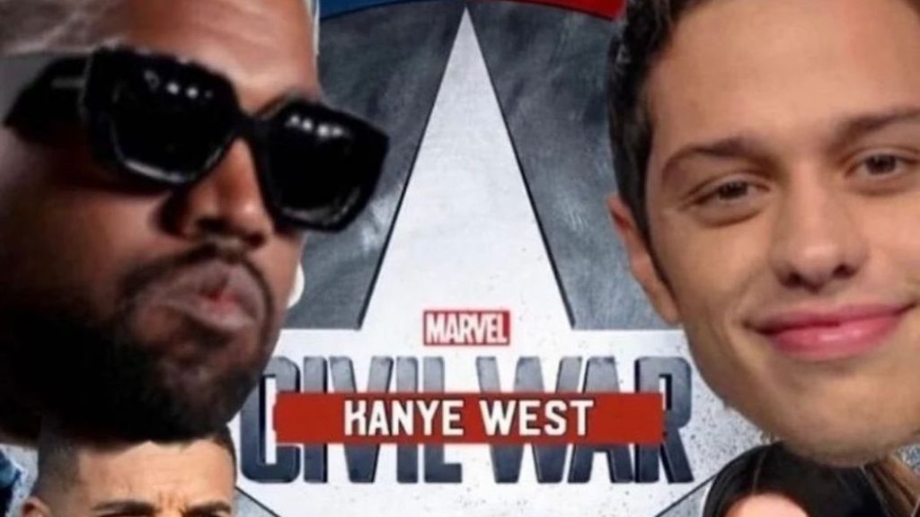 康耶维斯(Kanye West)自比漫威英雄,把《美国队长3:英雄内战》(Captain America: Civil War)的海报,P图变成他和前妻金卡黛珊(Kim Kardashian)、前妻现任谐星男友彼得戴维森(Pete Davidson)、泰莱史薇芙(Taylor Swift)等死对头对峙的画面,被网民批说“好幼稚”。