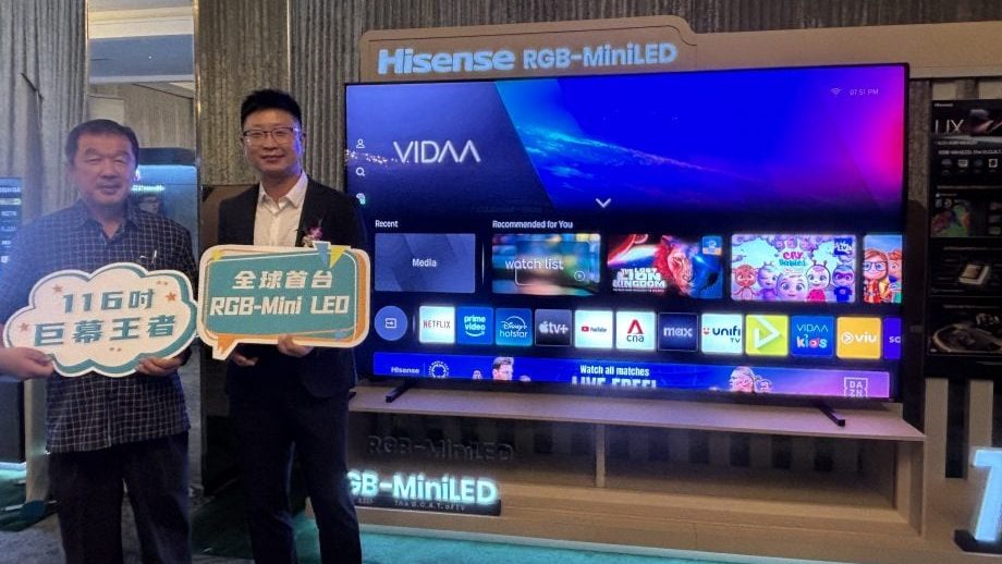 (新山25日讯)著名家电及家具商Lionmas近期将引入海信(Hisense)在东盟首推的全球首款116英寸UXRGB-Mini LED电视,届时消费者可亲临柏兰宜广场旗舰店,体验其带来的视觉与听觉享受。 Lionmas董事主席颜清水于昨午出席了海信在南马新山举办的,东盟区域首度推介这款最新技术产品亮相仪式。 他指出,该公司已销售海信产品长达10余年,并且在柏兰宜广场旗舰店等分行设立海信专卖区,提供消费者最新产品选择。 海信(大马)私人有限公司董事经理金子辉表示,海信进军大马市场已有15年,尤其先在南马地区发展业务,这也是为什么海信选择在新山举行东盟区首推介新电视产品的地点。 海信视像科技有限公司亚太营销中心副总经理江雪姣表示,该电视搭载RGB-Mini LED三维控色液晶显示技术,支持红青蓝三原色直出、RGB光色同控、RGB彩色背光,这有赖于电视机搭载双信芯人工智能(AI)画质芯片,而内设的28个发音单元,让声音更立体,犹如法国巴黎歌剧院水平。 “此电视产品只有1.8反射率,具有178度超广视角,无论坐在任何角度,观看效果都不会降低。” 出席上述推介礼嘉宾包括Lionmas市场助理经理袁慧敏。