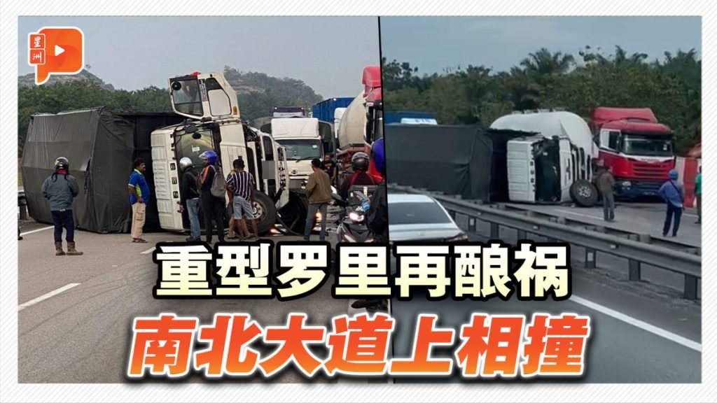 今日(12月13日)早上大约8时,南北大道再发生重型罗里相撞事故。根据网上流传的多段视频可见,两辆罗里不知何故相撞,白色罗里翻覆在马路中央,红色罗里的车头一侧被撞坏,但损坏情况不严重。