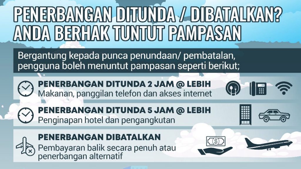 相信不少大马人曾经有过航班延误或取消的经历,国内贸易及生活费部在推特发文说,如果乘客遇到航班延误或取消的情况,是有权要求赔偿的。