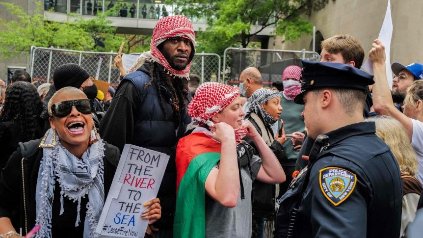 美国纽约大都会博物馆慈善晚宴,也称时尚奥斯卡的Met Gala会场附近今天出现集会活动,抗议以色列在巴勒斯坦自治区加沙地带战争,警方表示已逮捕多名抗议人士。