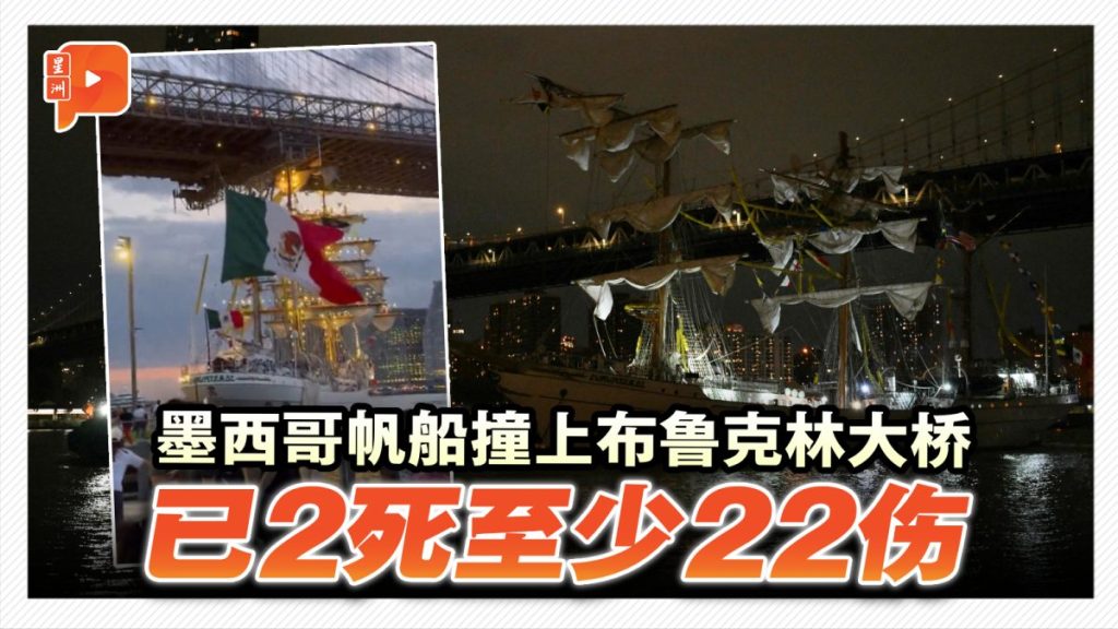 载有277人的墨西哥海军帆船Cuauhtémoc于5月17日晚上撞上美国纽约的布鲁克林大桥(Brooklyn Bridge)底部,造成2名船员不幸死亡,并有至少22人受伤。