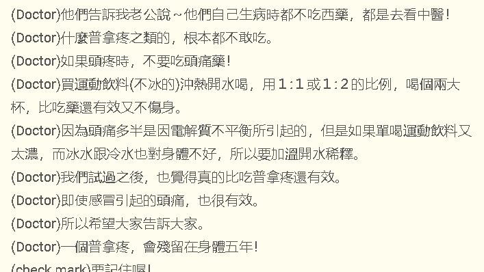 社群平台和通讯媒体自4月20日流传宣称“万一感染了冠病肺炎发烧,千万不要吃普拿疼(Panadol)~更容易死亡”的假新闻,医学专家指出,相信没有科学根据的传言可能造成更大危害。