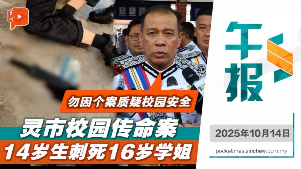 雪兰莪灵市万达镇一所国中今早发生惊人悲剧,一名14岁男生持刀刺死16岁女同学,当场酿命…… 【新闻看点】 灵市校园血案 全体学生被留校助查 国会掀“酒精论” 伊党促停止马航供酒 旺赛夫遭党开除 袁怀绍被冻结党籍 遭党开除 旺赛夫考虑上诉 吴家良劝马华国大党 “别急着嫁国盟” 安华痛斥悬挂以色列国旗“形同叛国” 没被邀上“加沙和平峰会” 安华亲揭原因 历时10小时搜寻 轿车坠麻河酿命案