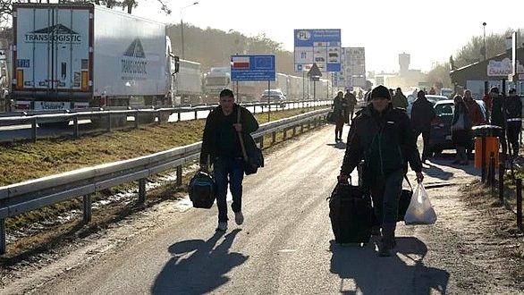 Lea and Keks are among the latest refugees arriving in Poland from war-torn Ukraine, both jumping at their master's feet and visibly relieved after crossing the border.