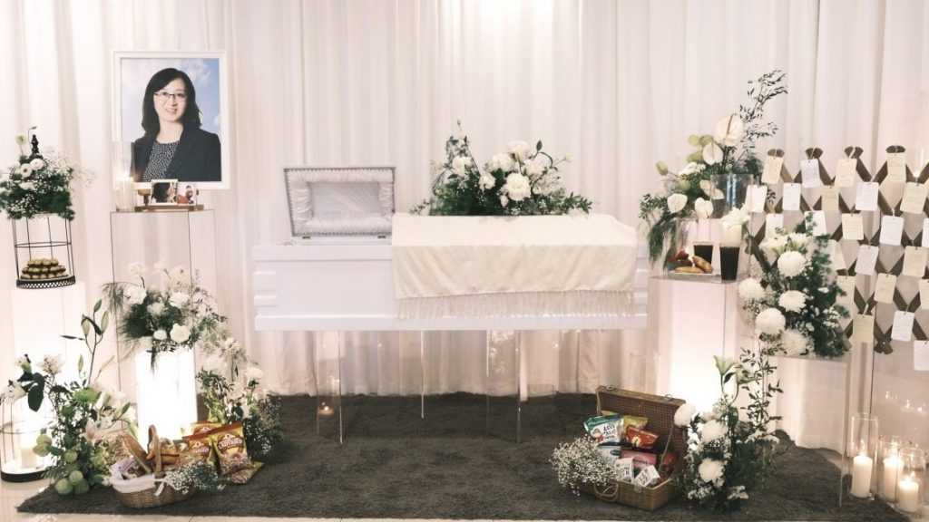 有手作蛋糕、榴梿、叉烧包、还有烧鸭、汽水;有各种零食、巧克力、饮料、点心甜食,“欢迎来到吃货Elaine的派对”,讣文就这么写,还嘱咐吊唁者“每人带一种食物来”,和亡者开一场人间最后的Potluck大食会,用美食缅怀她。