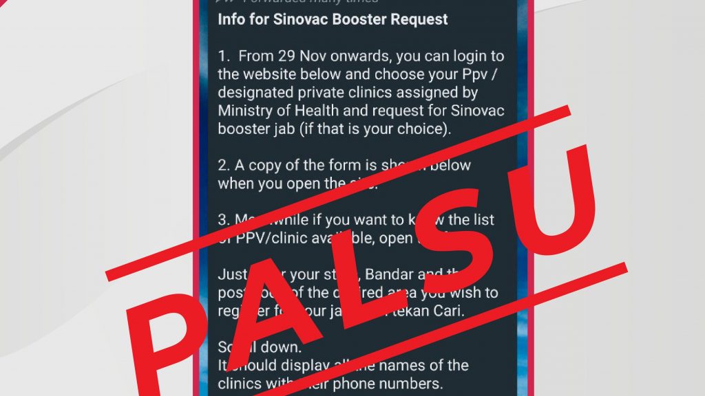 你是否有收到可以选择施打科兴加强针的WhatsApp短讯?这是假的!