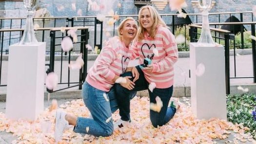 以电影《歌喉赞》(Pitch Perfect)中“胖艾美”一角爆红的澳洲女星丽贝威尔森(Rebel Wilson)今日宣布求婚成功,并晒出和女友的合照甜蜜写道:“We said YES!”