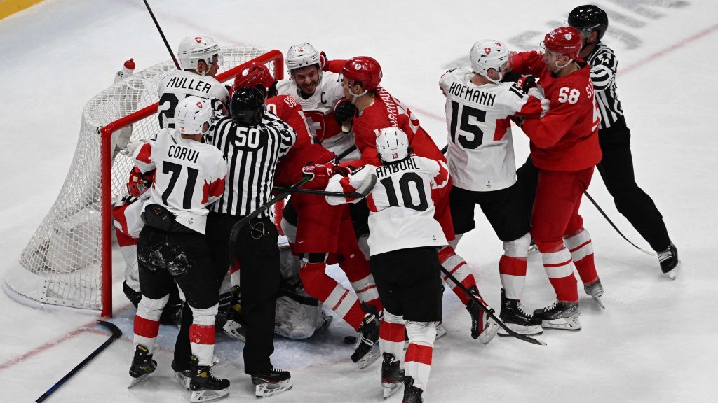 在周四掀战的男子冰球赛,俄罗斯奥理会(ROC)1比0击败瑞士,虽打响了首炮,但因为比赛中途两队发生打架,使这场比赛留下了污点。