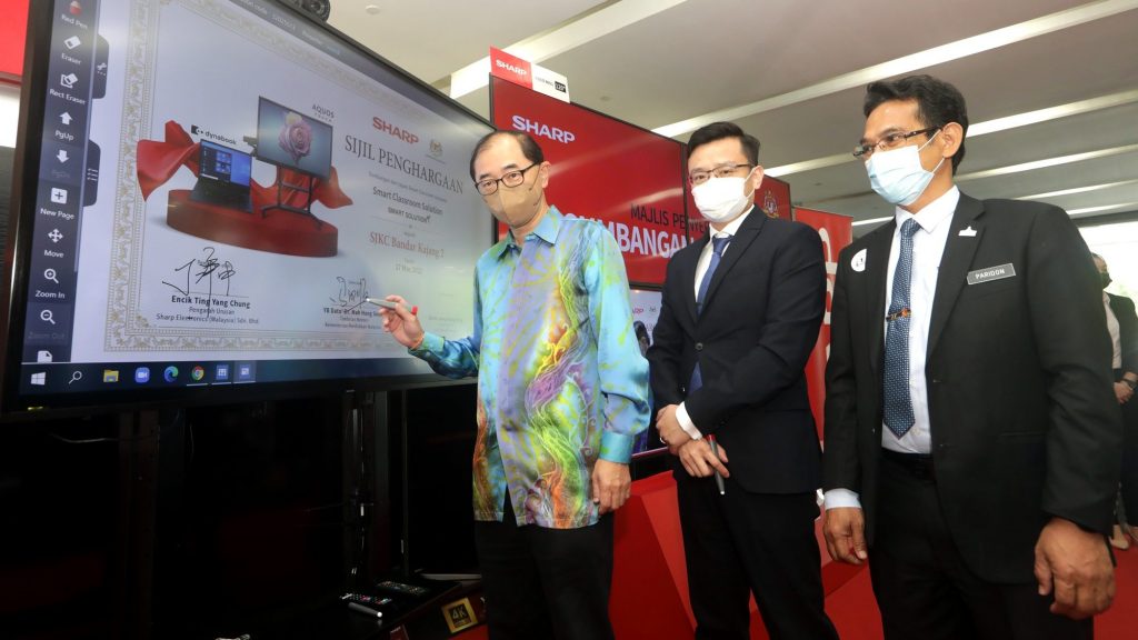 夏普(Sharp)电器(马)私人有限公司(大马夏普),今日移交一批总值38万3827令吉的各类型电器,捐赠给100所遭受去年杪大水灾浩劫的雪兰莪与彭亨各源流政府学校和津贴学校,帮助师生在新学年开学前,获得充足教学和上课器材学习。