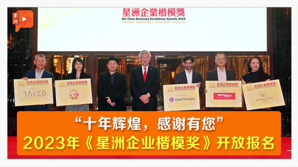 由《星洲日报》主办的2023年《星洲企业楷模奖》今年迈入第10届,并以“十年辉煌 感谢有您”为主题,透过专业评委严谨审核,遴选出表现最卓越的企业者。 想了解更多有关2023年《星洲企业楷模奖》详情 欢迎浏览 sinchewbusinessawards2023.sinchew.com.my