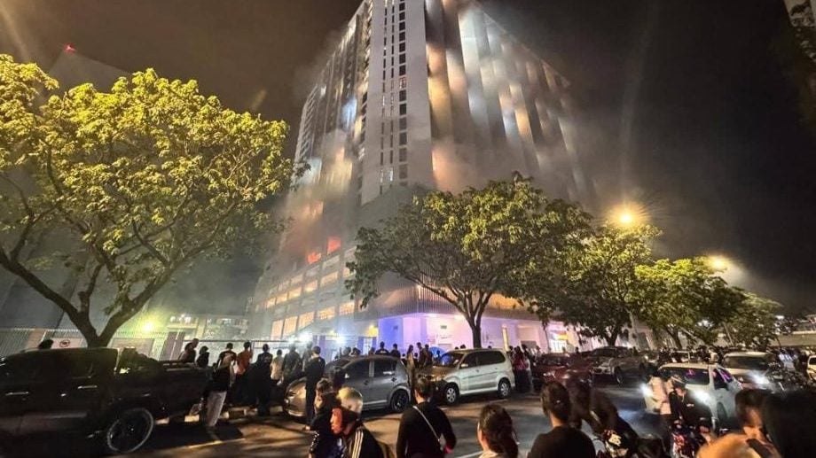 (亚庇29日讯)亚庇市区于今日凌晨连接发生两起严重火灾,其中一起火患是在高级公寓The Shore的5楼停车场发生,导致数以百计的游客和其他住客惊慌疏散。