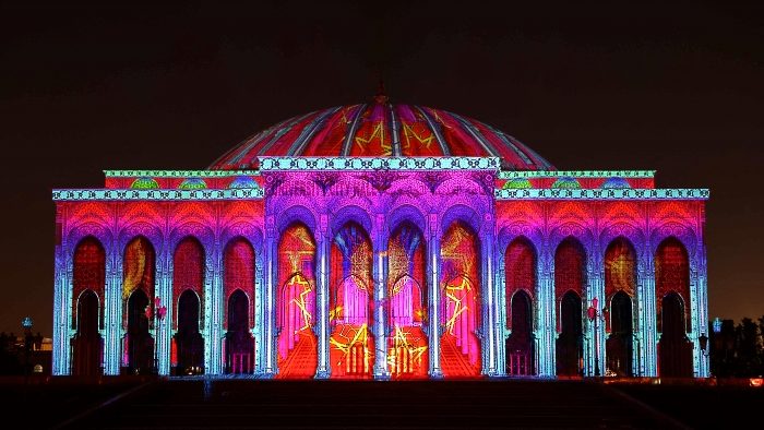 Buildings in the Emirate of Sharjah are lit up for the 11th annual Sharjah Light Festival.