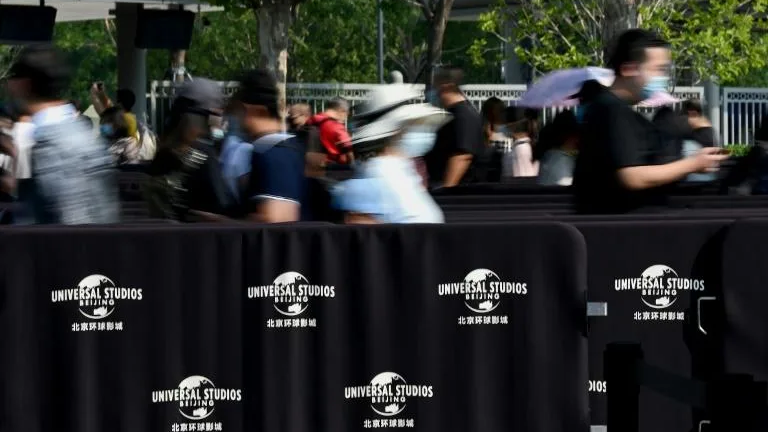 Visitors got a sneak peek at Universal Studios' first theme park in China on Wednesday as the Beijing attraction had a soft opening, drawing queues from dawn.