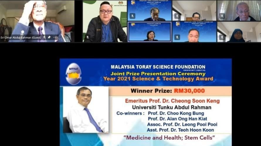 拉曼大学(UTAR)医学与保健科学院院长张顺景名誉教授及其合作研究员荣获2021年马来西亚东丽科学基金会(Malaysia Toray Science Foundation, MTSF)科学技术奖(Science and Technology Award)。该奖项每年颁发给两名杰出的马来西亚科学家或研究员,以表彰他们在科学与科技领域的出色成就,而每位获奖者将获得3万令吉的现金奖。
